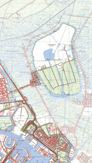 In 1922 bouwt Amsterdam Tuindorp Oostzaan in de Noorder IJpolder. Het dorp Oostzaan begint nu ook uit te breiden, met name in de Kerkbuurt. Op bovenstaande kaart is te zien dat er in 1980 een dorpskern is ontstaan rond de Hervormde Kerk. Ook langs het Weerpad, dat in middels de Kerkstraat heet, ontstaat bebouwing. Vanaf de jaren ‘30 wordt er begonnen met de inpoldering van het Twiske, maar de landbouwgrond bleek matig. In de jaren ‘60 wordt er in het Twiske grootschalig zand gewonnen voor de aanleg van de Coentunnel.