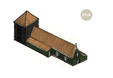 Materiaal: baksteen, hout, pannen.