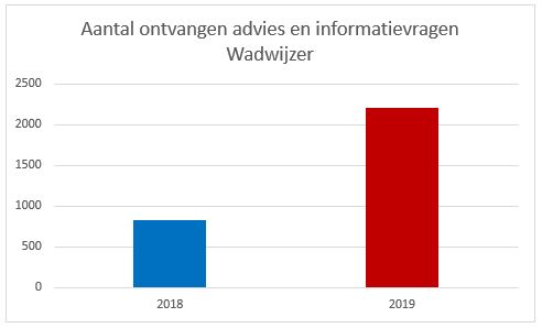 Figuur 19: Aantal ontvangen advies en informatievragen Wadwijzer