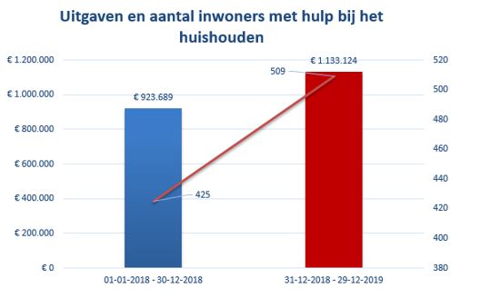 Op het gebied van de jeugdwet uitgaven zijn vooral en zeker de kosten voor jeugdbescherming gestegen en op het gebied van Wmo-begeleiding hebben wij instroom van inwoners tot intensieve vormen van begeleiding waargenomen. Daarnaast was er in 2019 – zoals verwacht – een sterke groei van de uitgaven en het aantal inwoners met en aan hulp bij het huishouden. De stijging ligt rond de 20%.