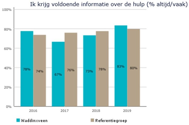 Informatievoorziening over de hulp is heel belangrijk. Zo weten jongeren en ouders wat zij van de hulp kunnen verwachten. 84% van de respondenten krijgt voldoende informatie over de hulp. 16% krijgt dat soms of niet. Het percentage respondenten dat aangaf voldoende informatie over de hulp te krijgen is ten opzichte van 2018 duidelijk gestegen (84% ten opzichte van 73%). In 2017 lag dit nog lager: 67%.