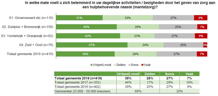 5.2.1 Ervaren belemmeringen in dagelijkse bezigheden door het geven van (mantel)zorg