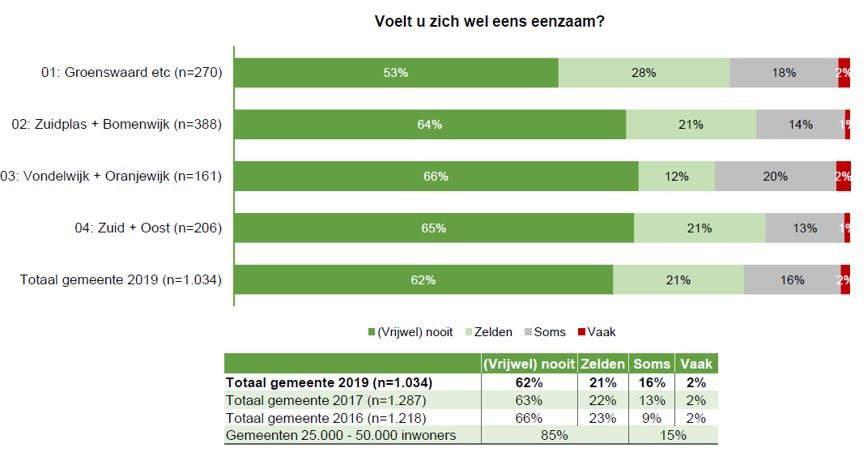 Inwoners beoordeelden in het onderzoek de kwaliteit van hun sociale contacten en hun gevoel van eenzaamheid. In 2019 gaven inwoners aan eenzamer te zijn in vergelijking met 2016.