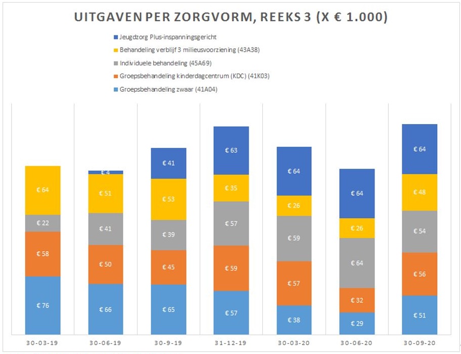 Een verdere volumeontwikkeling op het gebied van de Jeugdwet in 2020. De coronacrisis beïnvloed daarbij wel de hoeveelheid zorg die er geleverd is: zo zal er sowieso aan het einde van het eerste kwartaal en het begin van het tweede kwartaal minder zorg geleverd zijn, in het zomerkwartaal meer dan gebruikelijk.