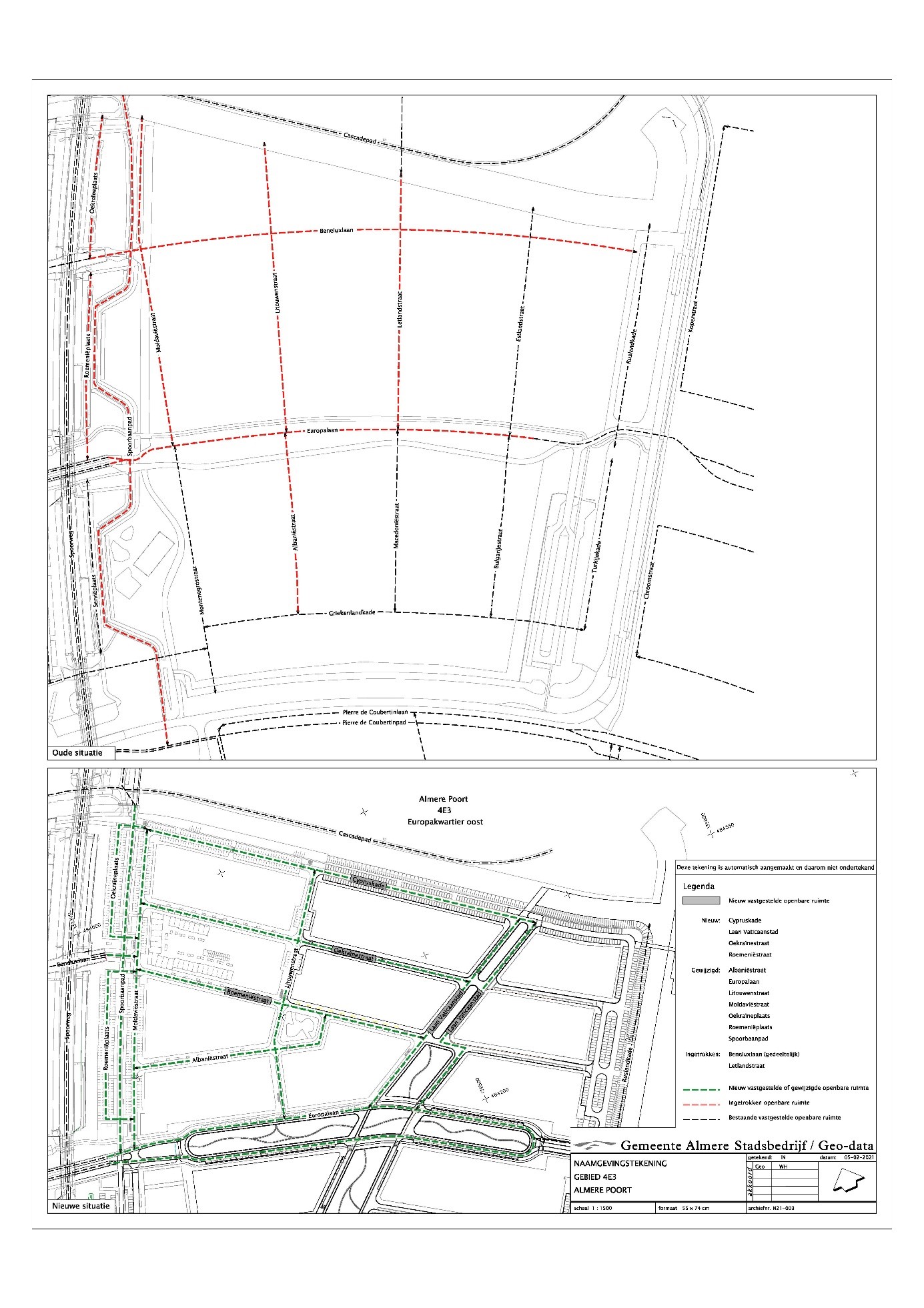 Vanwege herontwikkeling op het oorspronkelijke inrichtingsplan zijn in Europakwartier Oost meer straatnamen nodig als in eerste instantie was bedacht. Ook is de indeling van het wegennet anders geworden. Hierdoor worden diverse namen voorzien van een nieuwe geometrie (wijziging) en moeten er 4 nieuwe namen worden vastgesteld. Daarnaast wordt de Letlandstraat ingetrokken, maar deze komt in het aanliggende gebied later weer terug. Vanwege de andere indeling loopt de Beneluxlaan niet meer door Europakwartier Oost, maar eindigt bij de Moldaviëstraat en wordt dus gedeeltelijk ingetrokken.