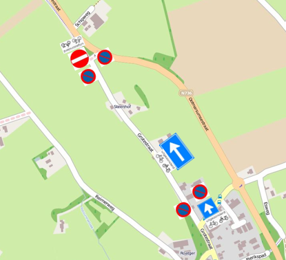 Plaatsing C2 Grotestraat bij aansluiting Fietspad met onderbord OB54