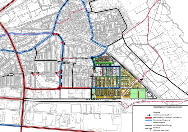 Op 19 november 2013 heeft de gemeenteraad Eindhoven op Weg vastgesteld. Dit is een document waarin o.a. is opgenomen hoe de stad wil omgaan met de auto- en fietsverkeerafwikkeling. Daarvoor is een wegencategorisering opgesteld en een fietsstructuurkaart met de hoofdfietsroutes. Uitgangspunt is om het autoverkeer samen te brengen op de wegen die daartoe aangewezen en ingericht zijn of worden. De Tongelresche Akkers, waaronder de Doolstraat en het Orkestpad, horen bij de wijk Doornakkers. Een kaartje van de verkeersstructuur hiervan is bijgevoegd. De hoofdverkeersontsluiting van deze wijk is via de Ring, Eisenhowerlaan en de route Ruysdaelbaan – Quinten Matsyslaan. De interne ontsluitingswegen zijn de Tongelresestraat en de noord-zuid routes Generaal Bothastraat – Rogier van der Weydenstraat en Broekakkerseweg – Heerbaan. De U-vormige ontsluitingslus in de Tongelrese Akkers maakt de verbinding compleet. De nieuwe woonbuurt met ongeveer 950 woningen wordt ingericht als 30km- zone, met veel groen en speelaanleidingen, voor een aangenaam en verkeersveilig verblijfsklimaat. Aangevuld met veilige en comfortabele fiets- en wandelpaden. Hierin past geen doorgaand autoverkeer.