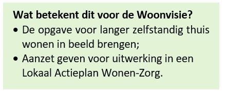 Mede met het oog op de vergrijzing, de ontwikkelingen in de zorg en het langer zelfstandig thuis wonen van mensen met een beperking, is het cruciaal goed te kijken naar het thema wonen en zorg.
