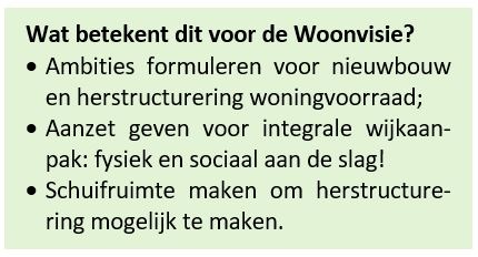 Het is cruciaal dat in de verdere uitwerking van de Woonvisie een scherp beeld geschetst wordt van de opgave: