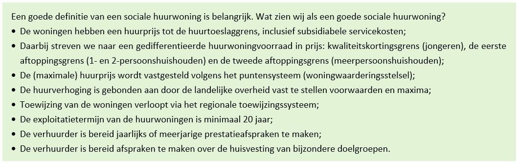 Een belangrijk onderdeel is kansen creëren en benutten om de noodzakelijke doorstroming te bevorderen. Om sociale huurwoningen beschikbaar krijgen voor degenen die deze het hardst nodig hebben en daarop al langer wachten. Maar we willen ook ruimte bieden aan onze woningcorporaties om extra sociale woningbouw te realiseren.