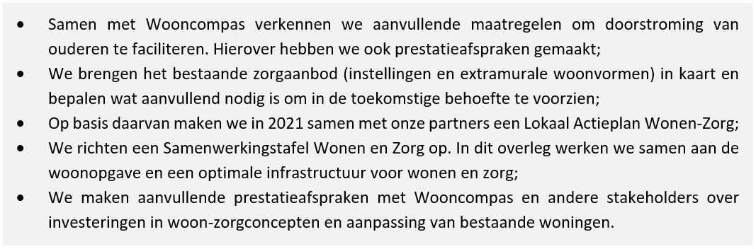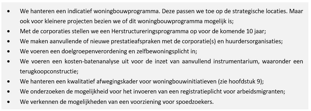 Opgave en beleid voor deze groepen zal in de Woonvisie helder gemaakt worden.