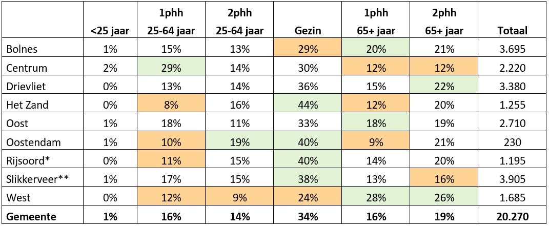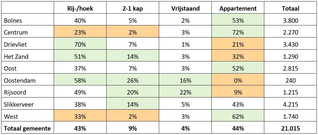 En de verschillen tussen de wijken zijn ook wat de woningvoorraad betreft helder: