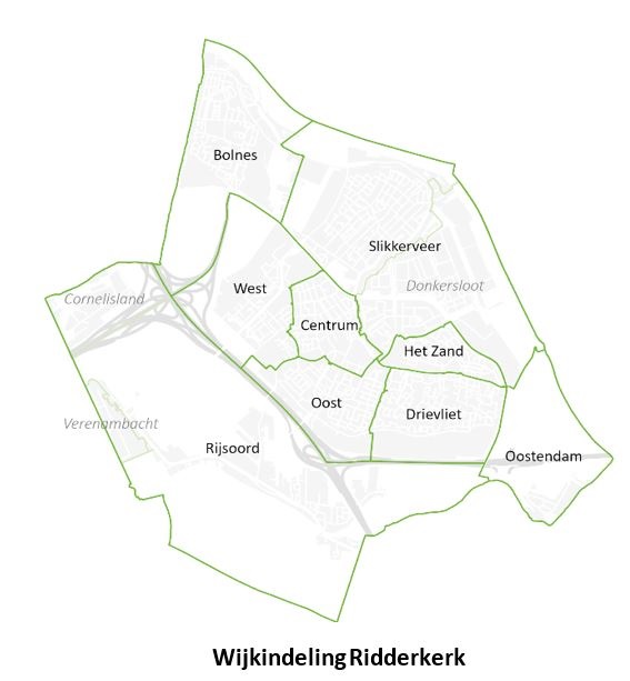 In de Woonvisie stellen we de focus ook scherp op de verschillende wijken van de gemeente Ridderkerk. Op basis van diverse gegevens en bronnen, en de beschikbare wijkprogramma’s komen we tot de volgende beschrijving en analyse. Deze verrijkten we met informatie en ideeën vanuit de wijken zelf (via wijkregisseurs, wijkoverleggen) en de stakeholders.