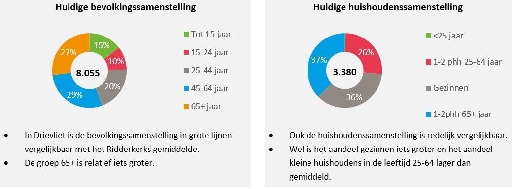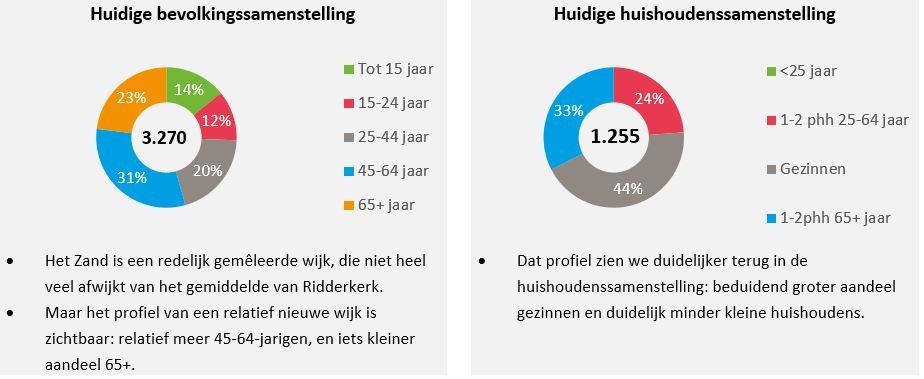 Conform de landelijke trend zet de vergrijzing van de bevolking van Ridderkerk verder door. Het aandeel gezinnen blijft overigens redelijk op peil en stijgt zelfs iets. Maar het aandeel van kleine huishoudens (met name alleenstaande) neemt toe.