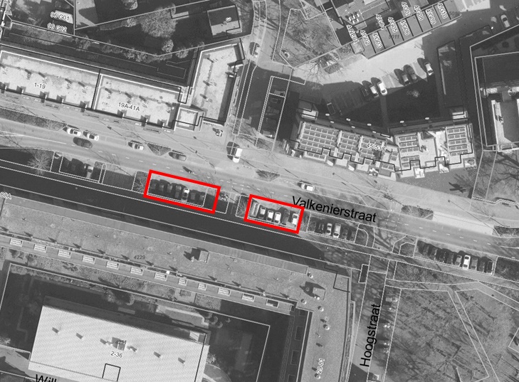 - dat de aanwezige parkeerschijfzone aan de noordzijde van de Valkenierstraat, tussen de Karel Mollenstraat Noord en de Europalaan, recent is verkleind om de aanleg van een bushalte mogelijk te maken;