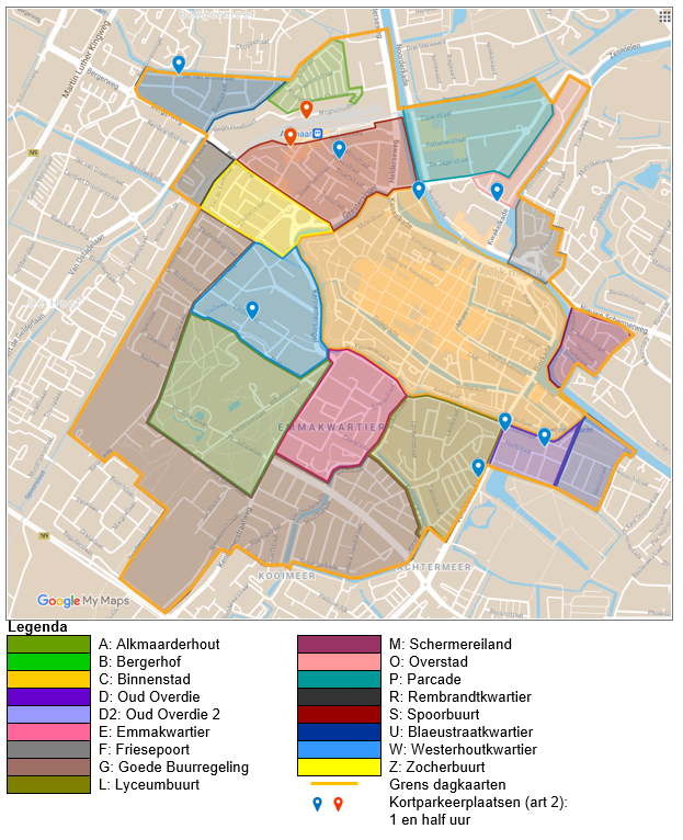 De plaatsen waar mag worden geparkeerd met een vergunning als bedoeld in artikel 2 lid 2 van de vigerende verordening parkeerbelasting alsmede artikel 2 van de vigerende parkeerverordening, zoals ook aangewezen op de bijgevoegde kaart vergunninghoudersparkeren: