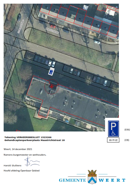 Verkeersbesluit voor een gehandicaptenparkeerplaats aan Maastrichtstraat 18 te Weert