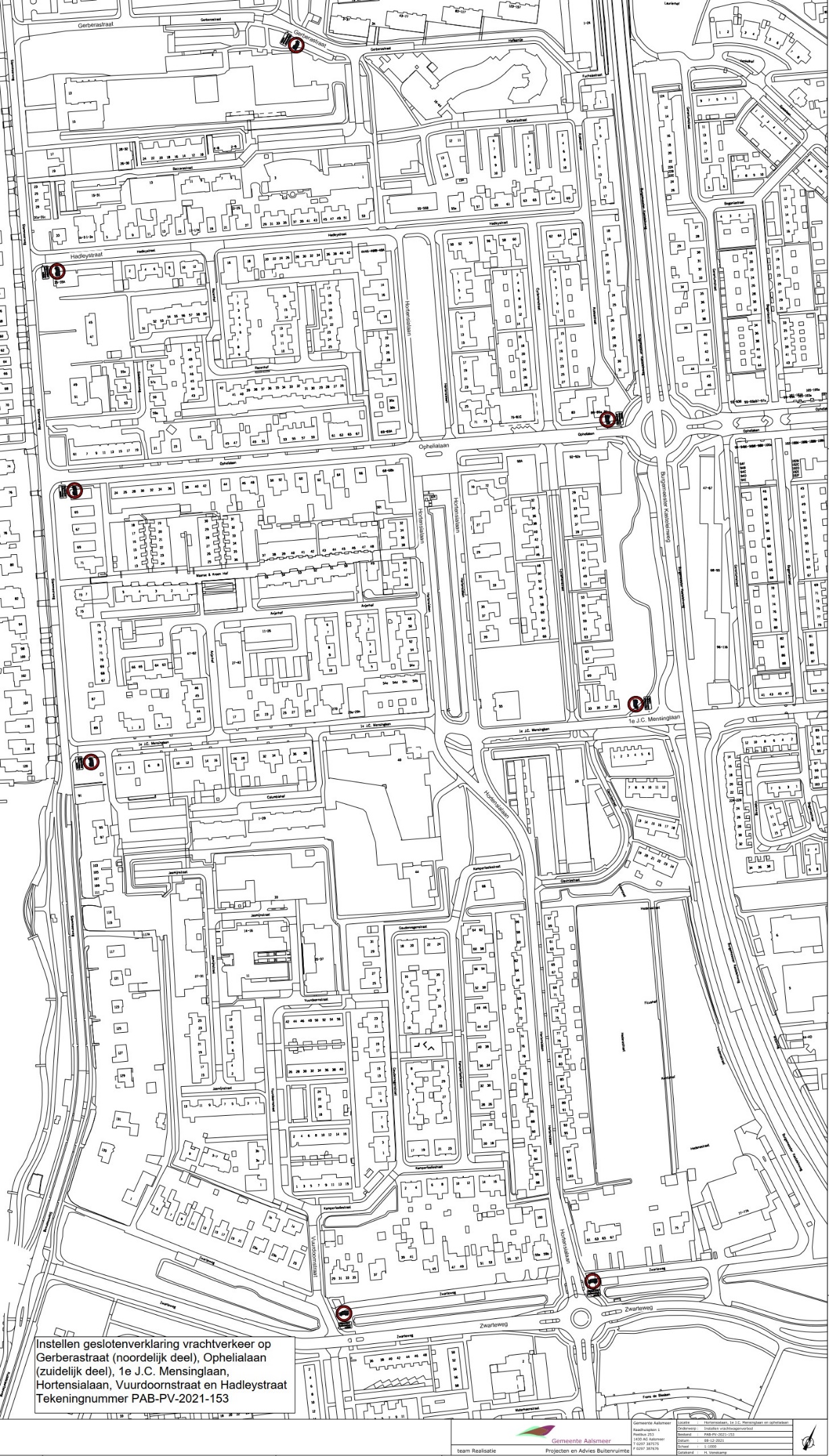 Verkeersbesluit instellen geslotenverklaring vrachtauto's (uitgezonderd bestemmingsverkeer) op de Gerberastraat (ten oosten van Seinpost), Ophelialaan (ten zuiden van Burgemeester Kasteleinweg), 1e J.C. Mensinglaan, Hortensialaan, Vuurdoornstraat en Hadleystraat
