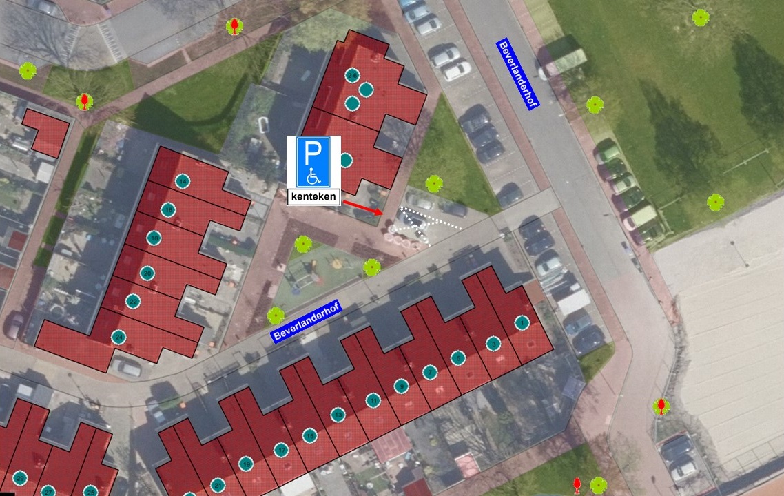 Door een inwoner is er een verzoek ingediend bij de gemeente Nieuwkoop voor het realiseren van een gehandicaptenparkeerplaats in de Beverlanderhof ter hoogte van huisnummer 8 t/m 12 in Ter Aar. De aanvrager is in het bezit van een gehandicaptenparkeerkaart (bestuurderskaart). Deze gehandicaptenparkeerkaart is noodzakelijk om in aanmerking te kunnen komen voor een gehandicaptenparkeerplaats op kenteken.
