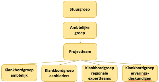 Een ambtelijke vertegenwoordiging uit de zes jeugdhulpregio’s neemt deel aan het projectteam BEN. De ambtelijke groep vergadert zo vaak als nodig is om een specifiek vraagstuk te bespreken en/of uit te werken.
