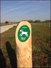 Figuur 4.1 voorbeeld paal met bordje hondenlosloogebied. Bron: doggydating.nl