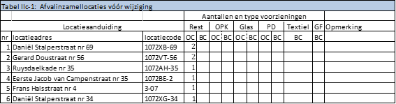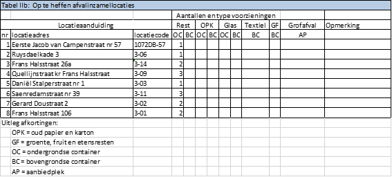 De volgende locaties, zoals aangegeven op de bij dit besluit behorende overzichtstekening, op te heffen als afvalinzamellocatie van huishoudelijk afval;