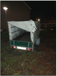 De aanhangwagen is geconstateerd op 9 december 2021 aan de Van Tets van Goudriaanstraat te Gorinchem. Wij zijn voornemens om de aanhangwagen weg te slepen op grond van artikel 5:5 van de Algemene Plaatselijke Verordening gemeente Gorinchem. De eigenaar van de aanhangwagen kan niet worden achterhaald.
