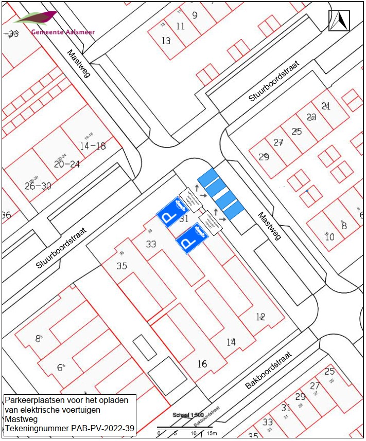 Burgemeester en wethouders van Aalsmeer besluiten om op de Mastweg vier parkeerplaatsen aan te wijzen als parkeerplaats voor het opladen van elektrische motorvoertuigen. De parkeerplaatsen mogen alleen gebruikt worden voor het opladen van deze elektrische motorvoertuigen.
