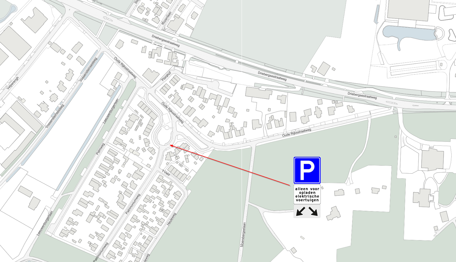 Het aanwijzen van twee parkeerplaatsen uitsluitend bedoeld voor het opladen van elektrische voertuigen door het plaatsen van verkeersbord E4 uit bijlage 1 van het Reglement Verkeersregels en Verkeerstekens 1990 (RVV 1990) inclusief onderbord met de tekst ‘alleen opladen elektrische voertuigen’ en voorzien van onderbord OB504 (pijlaanduiding) op de locatie Oude Rijksstraatweg 7, Doorn, conform de bij dit besluit behorende tekening.