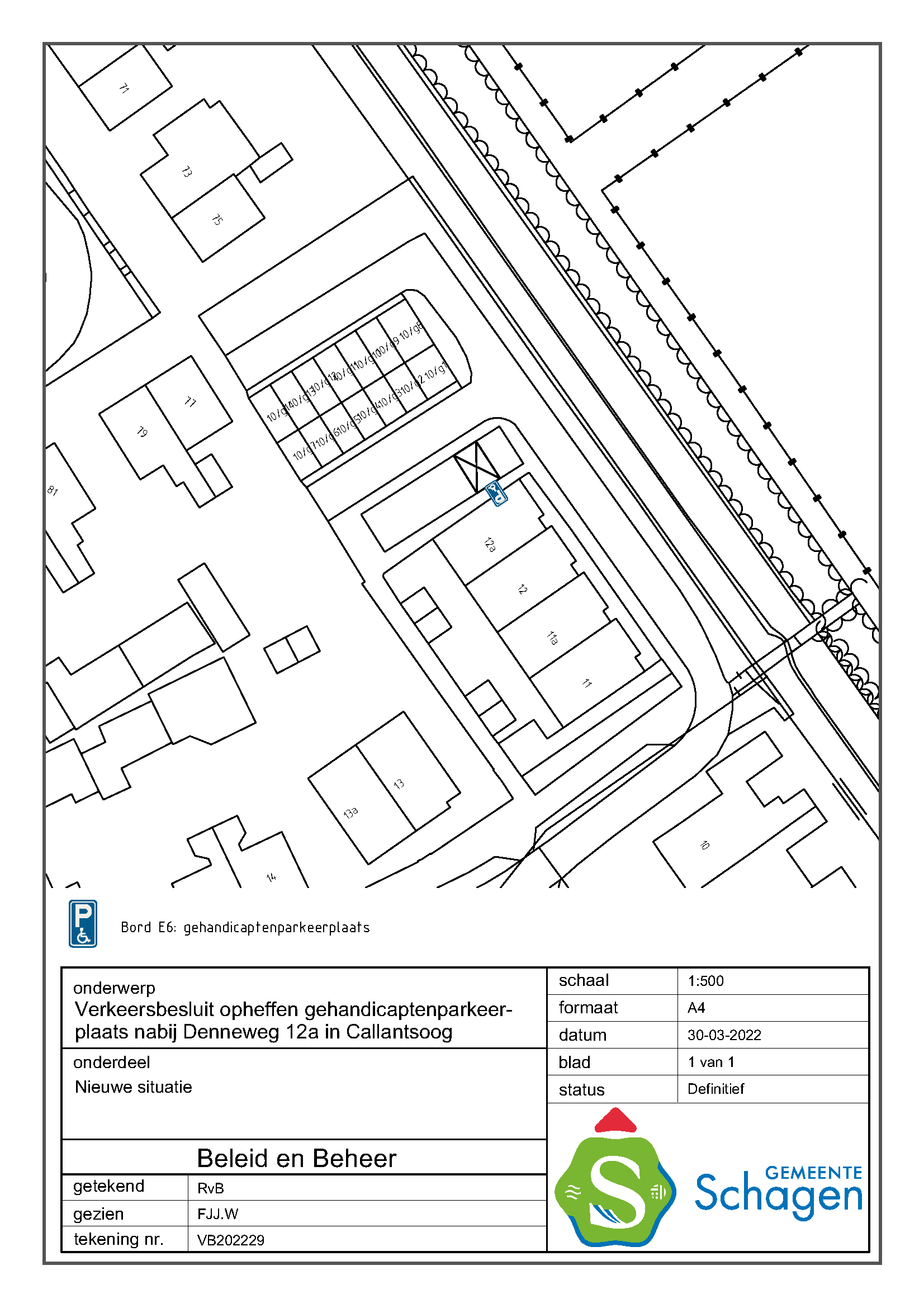 Gemeente Schagen- Verkeersbesluit opheffen algemene gehandicaptenparkeerplaats nabij Denneweg 12a, Callantsoog.