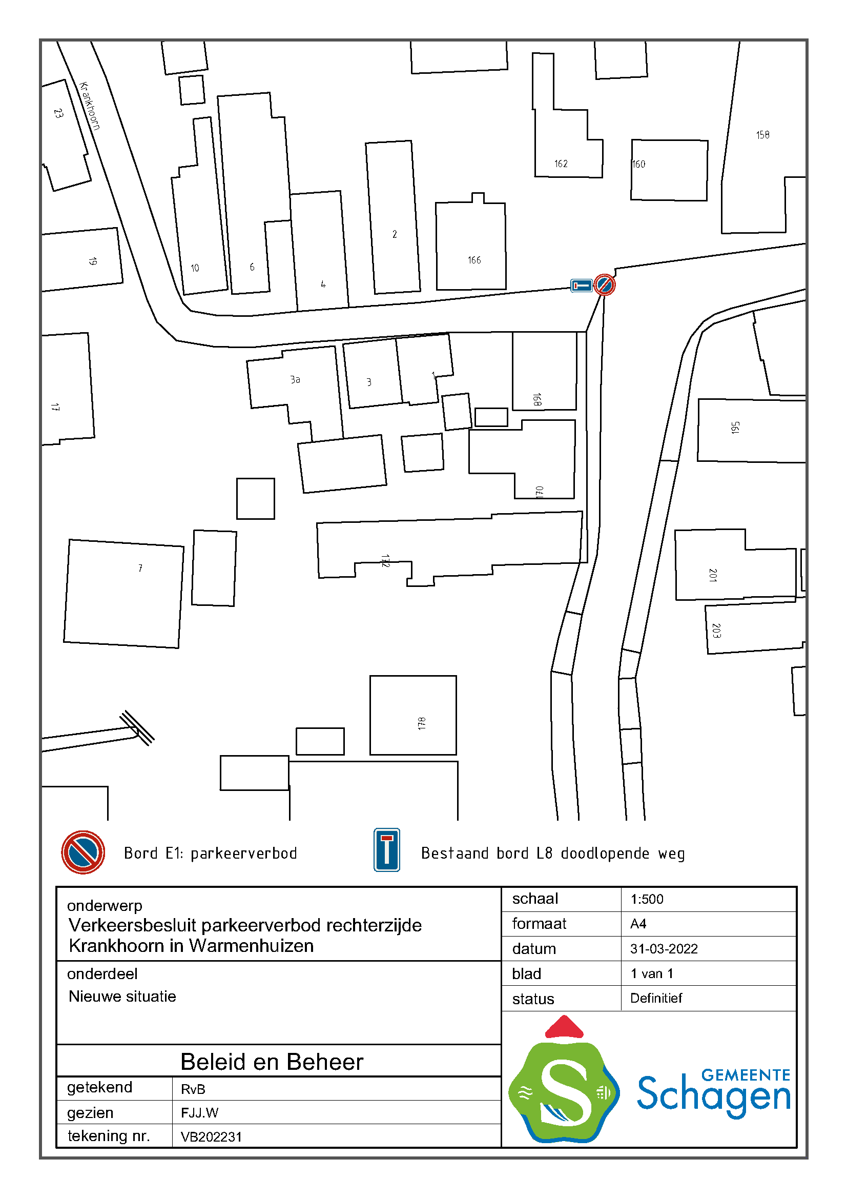 Gemeente Schagen- Verkeersbesluit instellen parkeerverbod (ged.) op de Krankhoorn, Warmenhuizen.