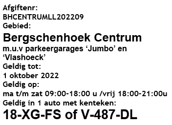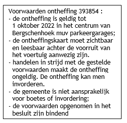 Besluit tot tijdelijke ontheffing parkeerschijfzone Centrum te Bergschenhoek