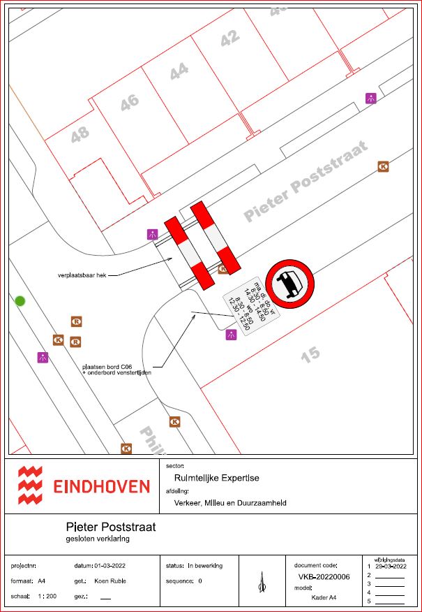 het bij wijze van proef afsluiten van de Pieter Poststraat tijdens de haal- en brengmomenten van basisschool de Opbouw (ma-di-do-vr 08.30 - 08.50 en 14.30 - 14.50 en wo 08.30 - 08.50 en 12.30 - 12.50). De proefperiode duurt ca. 10 weken (9 mei – zomervakantie 2022).