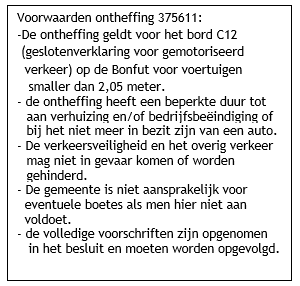 Besluit tot ontheffing geslotenverklaring voor motorvoertuigen Bonfut te Berkel en Rodenrijs