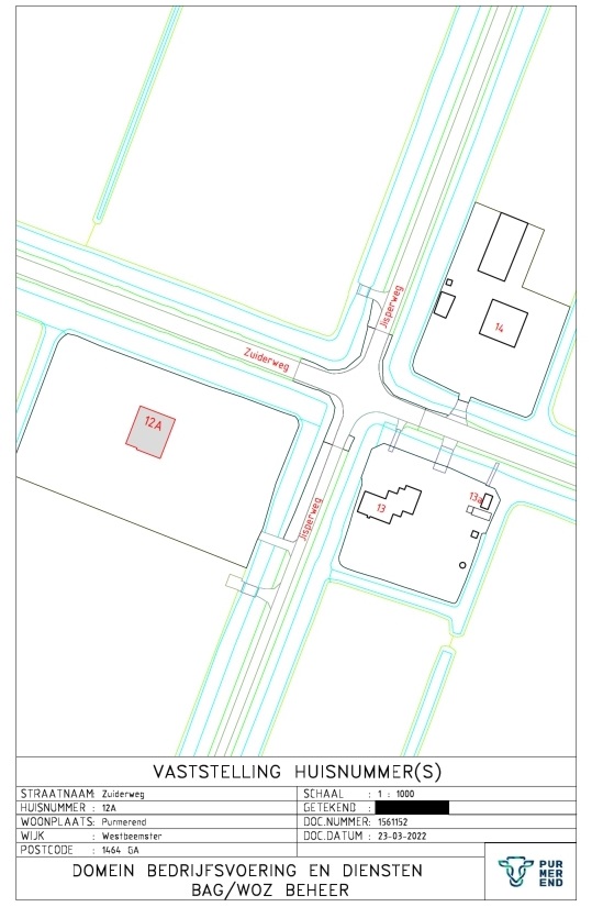 Kennisgeving huisnummerbesluit Zuiderweg 12A Westbeemster