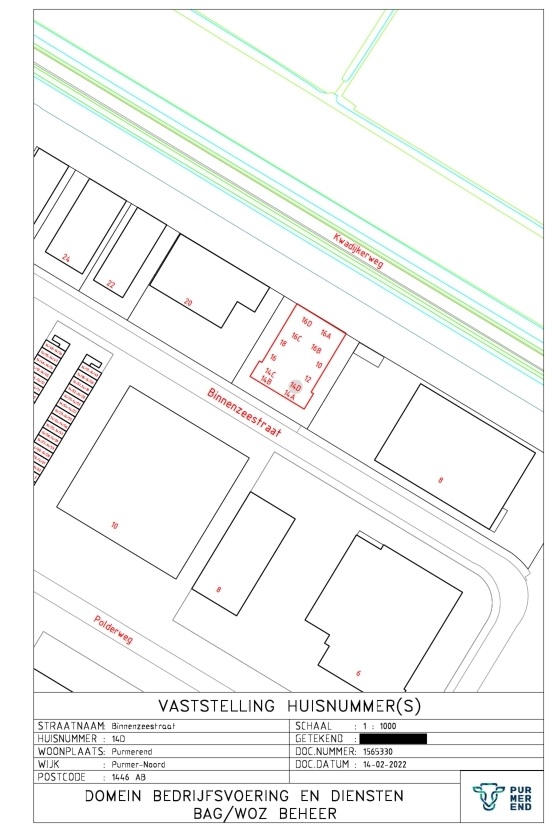 Kennisgeving huisnummerbesluit Binnenzeestraat 14D Purmerend
