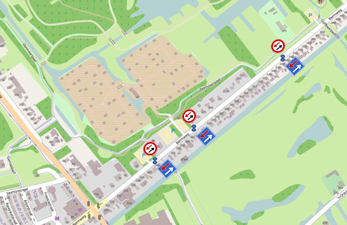 er op dit traject van de Bermweg drie versmallingen aanwezig zijn om de snelheid te remmen;