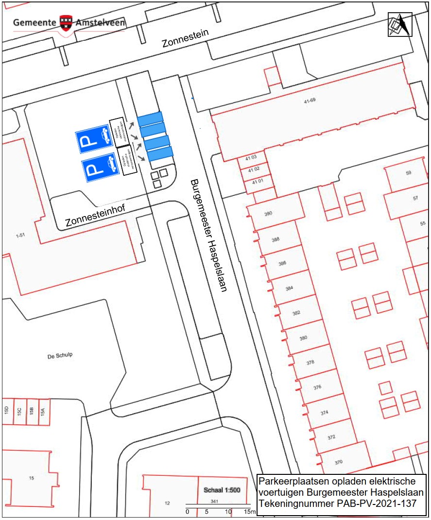 Burgemeester en wethouders van Amstelveen besluiten om in de Burgemeester Haspelslaan vier parkeerplaatsen aan te wijzen als parkeerplaats voor het opladen van elektrische motorvoertuigen. De parkeerplaatsen mogen alleen gebruikt worden voor het opladen van deze elektrische motorvoertuigen.