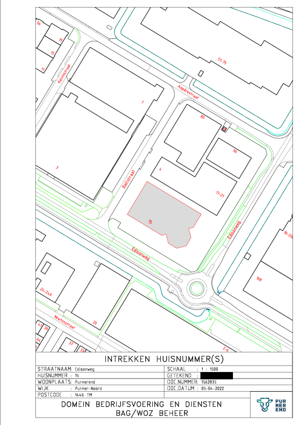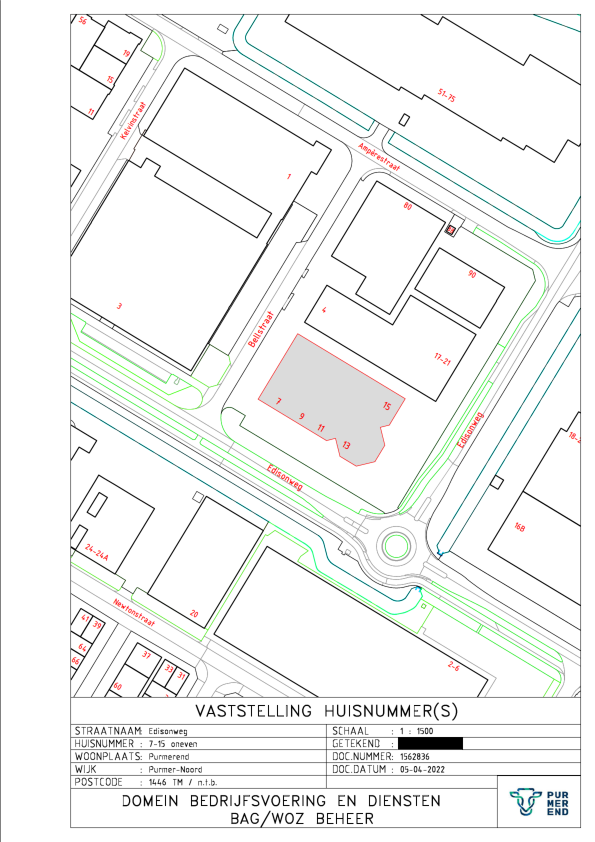 Kennisgeving huisnummerbesluit Edisonweg 7-15 (oneven) Purmerend