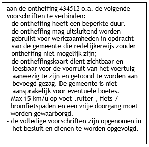 Aan de ontheffing de volgende voorwaarden te verbinden:
