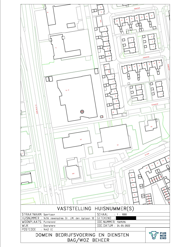 Kennisgeving huisnummerbesluit nevenadres Sportlaan 147A Purmerend