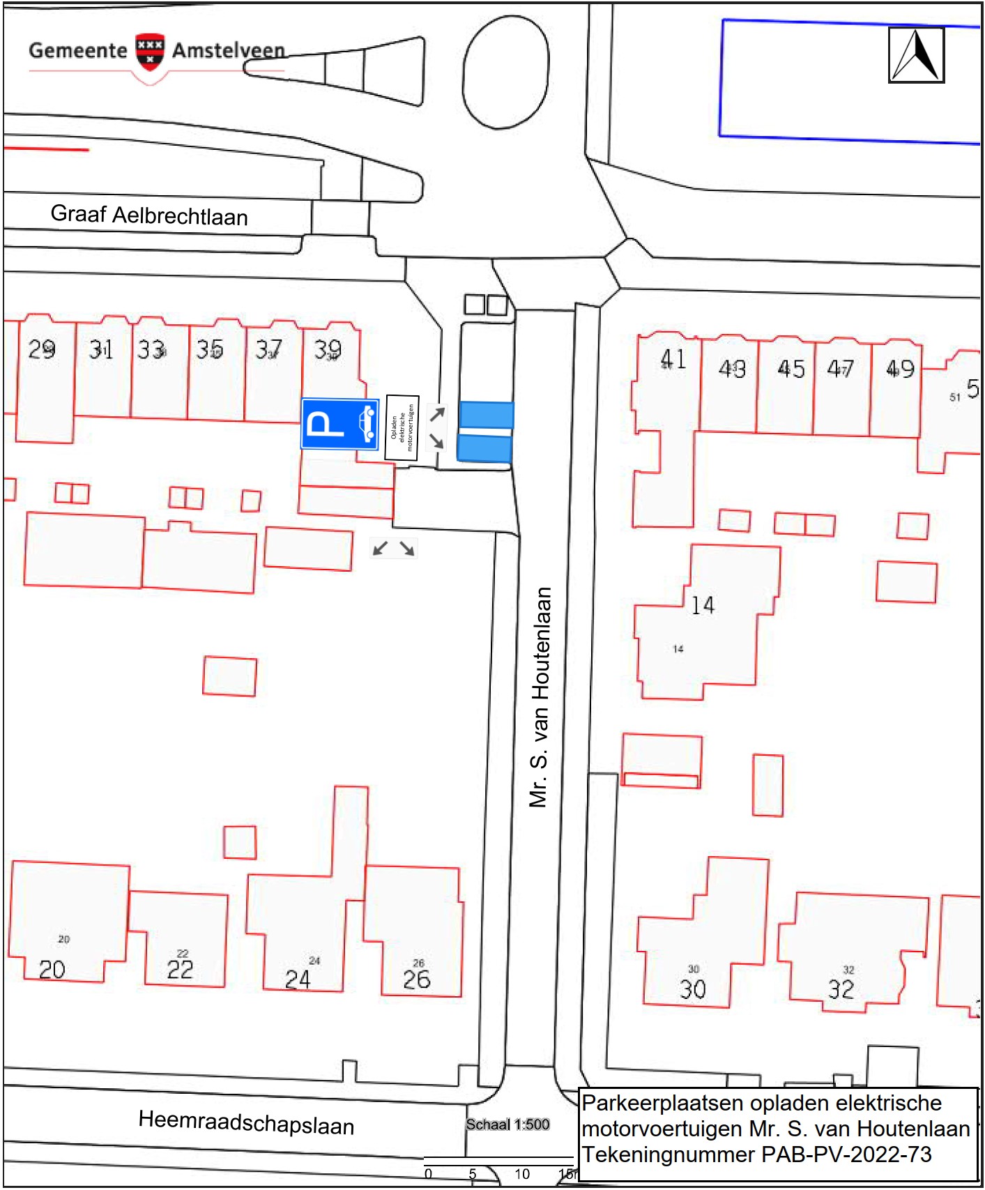 Verkeersbesluit parkeerplaatsen opladen elektrische motorvoertuigen Mr. S. van Houtenlaan