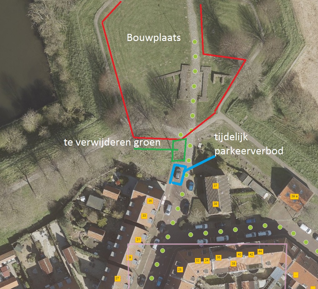 c door het weghalen van de parkeerbelijning en de parkeertegel het “parkeervak” niet meer gebruikt kan en mag worden (parkeerverbod in zone voor de gehele vesting);