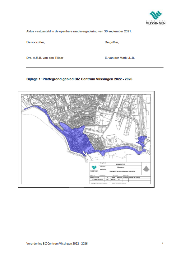 Verordening Bedrijveninvesteringszone (BIZ) Centrum Vlissingen 2022-2026