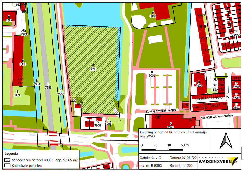 Het collegebesluit ligt tezamen met bijbehorende bijlagen, bevattende het kadastrale overzicht en een lijst met daarop het aangewezen perceel en perceelsgedeelte(n), de grootte, de namen van de eigenaren en rechthebbenden van de daarop rustende beperkte rechten, met ingang van 23 juni 2022 gedurende zes weken ter inzage op het gemeentehuis van Waddinxveen.