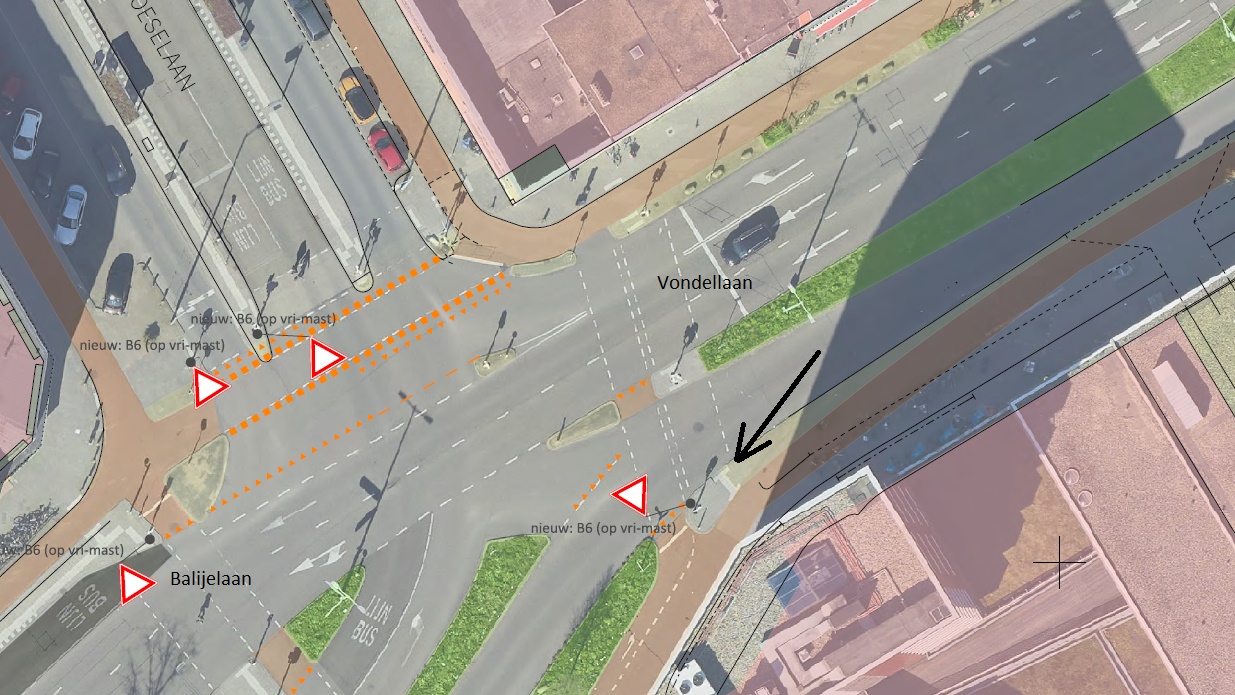 de fietsoversteek ter hoogte van de Vondellaan huisnummer 204 onderdeel is van de kruising van de Croeselaan en de Vondellaan met de Balijelaan;