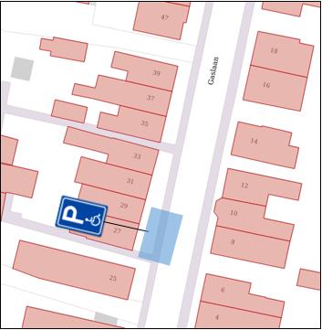 Indicatie van de te plaatsen gehandicaptenparkeerplaats.
