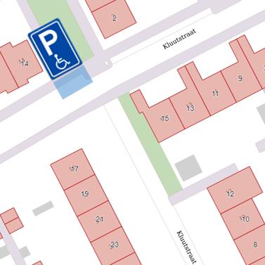 Indicatie van de te plaatsen gehandicaptenparkeerplaats.
