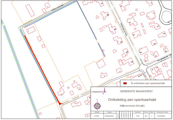 Het ontwerpbesluit om de het onverharde gedeelte van de Willevenstraat in Schaijk (kadastraal bekend gemeentedeel Schaijk sectie C perceelnummers 4487 en 4488) aan de openbaarheid te onttrekken, heeft vanaf 7 februari 2022 t/m 21 maart 2022 ter inzage gelegen. Binnen deze periode zijn zienswijzen ingediend door een vijftal indieners.