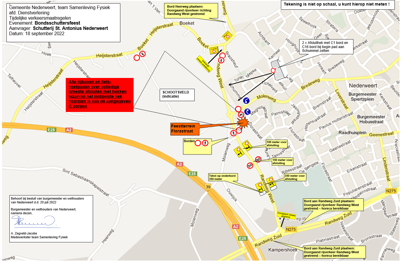 overwegende, dat Schutterij St. Antonius in Nederweert voornemens is op 17 en 18 september 2022 een Bondsschuttersfeest te organiseren te Nederweert;